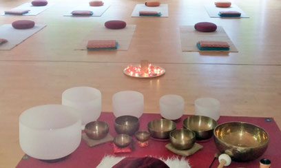 Mit den Klängen öffnen wir das Feld. Im Lauschen der Klänge kann ihre heilsame Kraft empfangen werden und sich ihre Wirkung im Inneren entfalten.